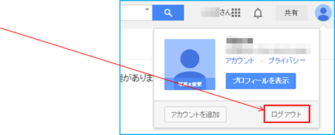 | 2.この部分をクリックし、一旦、現在ログインしているアカウントをログアウトします。 |