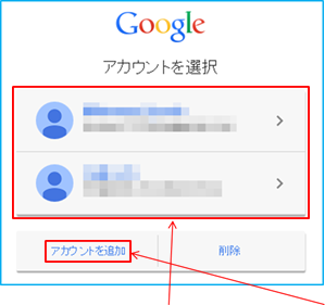 | 4.「ログイン」ボタンをクリックします。すると、下図のような画面が表示されます。(アカウント選択画面) |